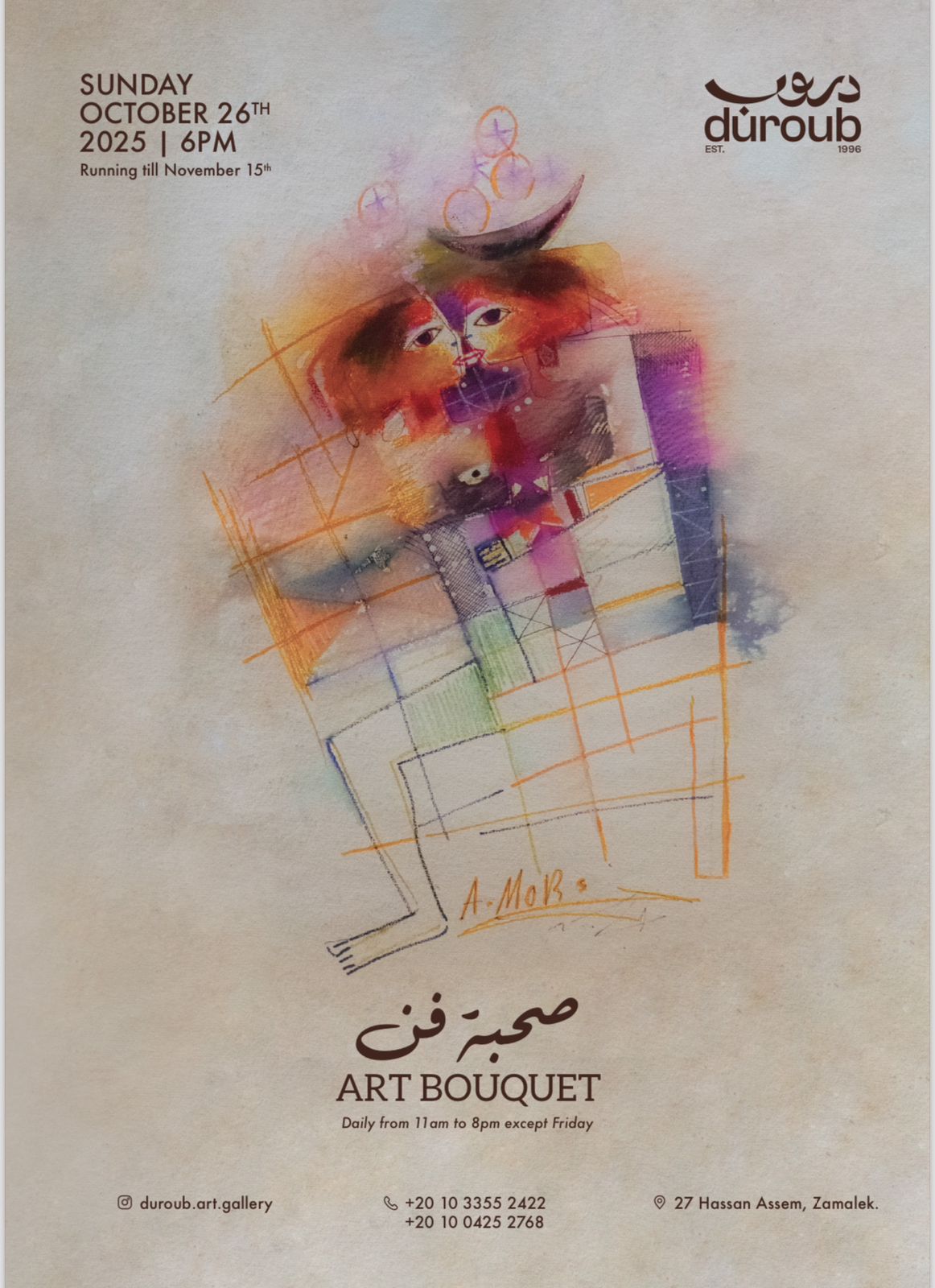 Droub Gallery is delighted to host the opening of its new exhibition hall in Zamalek through the group exhibition “Art Bouquet.”