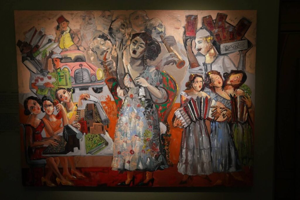 The exhibition features the participation of 29 artists from different generations and directions, presenting diverse works in painting and sculpture. All works reflect the depth of artistic and cultural inspiration Umm Kulthum generated over the decades. It also includes a special documentary section on her journey in Egyptian press across a full century, with original copies of newspapers and magazines chronicling her artistic and human story.